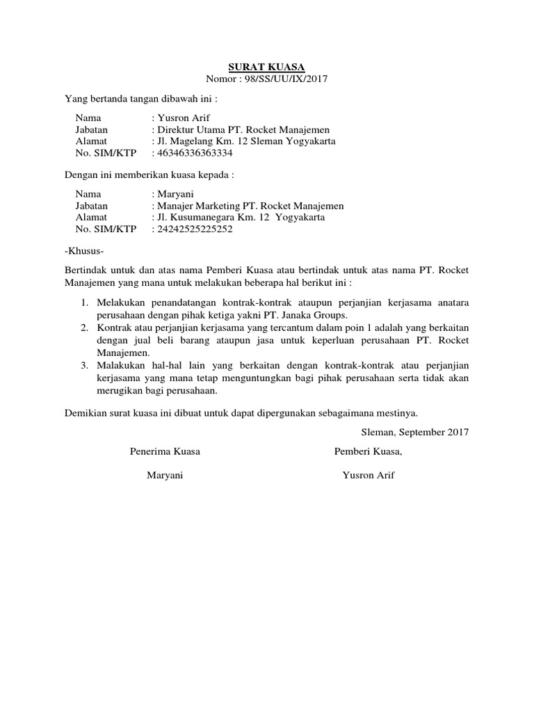 Sebelum membuat surat kuasa ada baiknya ketahui contoh surat kuasa yang baik dan benar terlebih dahulu. Contoh Surat Kuasa Perwakilan. Metode Penyampaian Kata Sambutan.